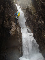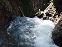 Aquest cap de setmana RicardVic i jo (Saba) hem fet l’Eriste casi sencer. La veritat es que ens esperàvem trobar mes aigua, ja que fins al moment no havíem vist cap estat de caudals al foro, i pensàvem que encara aguantaria bastanta neu per dalt, però res d’això, ja que està poc per sobre del caudal d’estiatge, tot i que per a aquest barranc ja implica alguns passos delicats. Dic que el vam fer casi sencer per que ens vam saltar la primera part del tram del mig, ja que ens interessava mes fer el tram final que és mes bonic i no teníem temps per a tot.