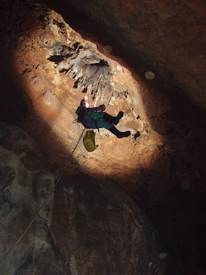 Aquest cap de setmana hem aprofitat per explorar algunes incògnites que ens quedaben pendents, i també per fer algunes fotos als pous d’entrada, si si, dic pous d’entrada perque hem pogut desobstruir el «Pou del Ternal», on ens bloqueijava el pas una pedra d’uns 250kg, que gracies al ternal de Pinyol hem pogut apartar. Lo pou nou consta d’una gran tirada volada amb unes vistes sobre la sala de la xorrera blanca espectaculars, i gracies a aquest ens estalviem tenir que passar per les dos gateres del primer pou que vam obrir.