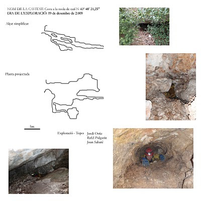 El passat mes de desembre fent una volta per la Mola vàrem descobrir dos forats, un en una boca molt petita que calia eixamplar una miqueta i un altre en una boca mes generosa i que prometia mes i, una vegada demanat el permís pertinent…, el 19 de desembre desafiant les inclemències del temps vam anar a explorar-les, primer vam fer el que menys prometia pensant fer bona aquella dita que diu que la que menys il·lusions genera es la que mes tira, però va resultar ser un petit forat sense gaire importància; però ei qui sap quan salta la perdiu i a cops de fer-ne molts al final sempre en hi ha un que tira, desprès de fer aquest forat vam anar a fer l’altre en una boca molt mes generosa i que prometia mes, però a l’entrar ens vam trobar en que no era una cavitat verge ja que hi havia restes de la desobstrucció d’una gatera, superada aquesta hi ha una saleta i la cova s’acaba. Es el que te la Mola que es la zona del Massís del Port que mes exploracions espeleològiques ha sofert, però la experiència recent ens demostra que no podem baixar la guàrdia ja que encara queden moltes sorpreses agradables per als amants de l’espeleologia que fem una feina ben feta.