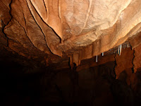Però el millor ha arribat quan sortíem, Cantero ha vist una gatera oculta detras d’uns blocs, i un cop l’ha passada ha fet uns 50m en la direcció de la pista, fins que un petit pou l’hi ha barrat el pas, però ha pogut veure una gran sala que es troba al fons d’aquest. Jo fins allí no he pogut arribar, ja que per molta maseta i escarpi que portem, quan rasca, rasca… i no he pogut superar la forma de S que fa la gatera. Inclús pel que m’ha explicat Cantero (i he sentit com rascava i renegava) després ha fet una altra gatera que l’hi ha donat seriosos problemes al sortir.