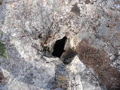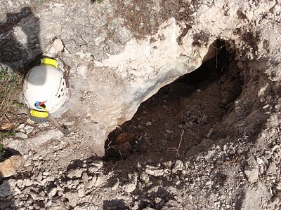 El segon és un forat en mig d’una roca que sobresurt dintre d’una finca d’oliveres, aquest solament el vam visitar i vam estudiar la possible manera d’obrir pas, ja que s’aprecia continuació, però en aquest cas donarà més feina que al forat de la Curba.