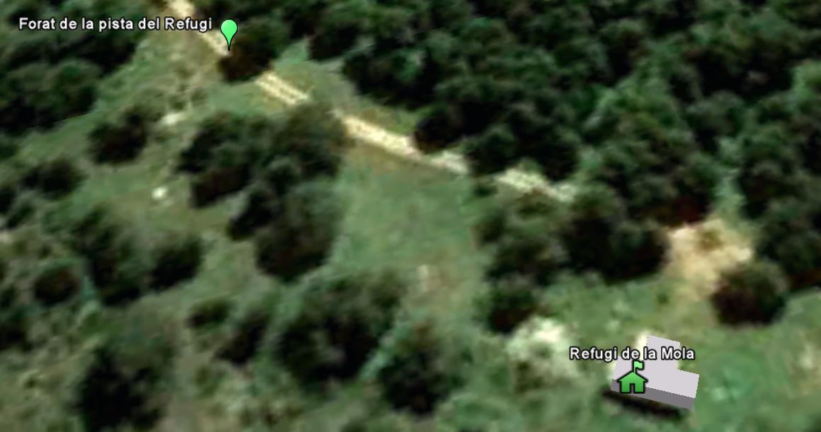 Estaba jo i uns companys del ECG al refugi quan va vindre el 4X4 d'un forestal a marcar amb unes cintes el forat.