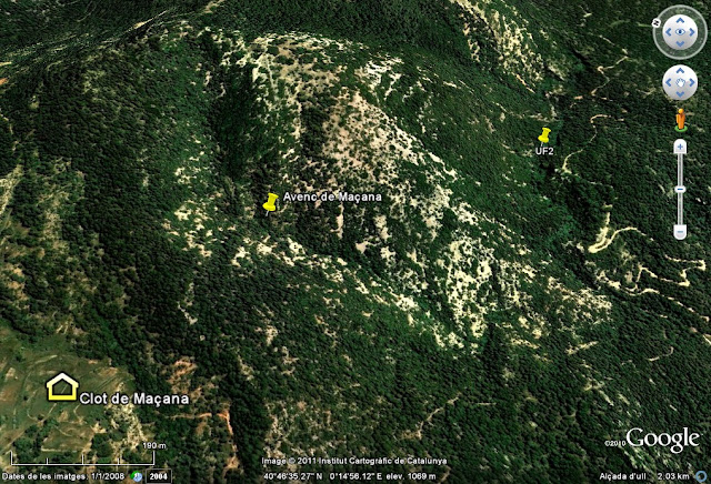 Es tracta d’un magnífic avenc que fins ara costava una mica de trobar, però espero que aquestes coordenades serveixin per a que més gent el pugui visitar sense donar tantes voltes com nosaltres. El millor es accedir des de la pista de fredes a Caro i pujar pel GR fins al coll de Navic, després seguir fins al següent coll en direcció Oest i baixar pel barranc que allí comença fins trobar l’avenc uns 100 metres de desnivell més a baix al costat esquerre hidro, just després de passar una zona trufera amb les reixes trencades.