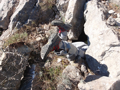 Dit i fet, vam seguir les seves magnifiques indicacions i como no, vam pegar un munt de voltes sense trobar res (és lo que passa sempre en estos casos, los que us dediqueu a això de buscar forats ja m’entendreu), però quan ja tornàvem cap a la sendera vam trobar un parell de forats molt pròxims que tenien una mica de corrent d’aire, però res exagerat, i després de desobstruir una mica les boques vam veure que possiblement continuaven però que era inviable treballar-hi.