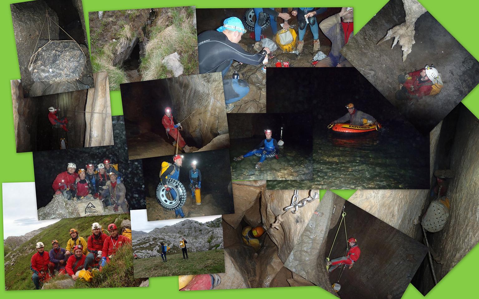 El divendres 22, ens ajuntem 6 companys de l’ESPEMO i de la UEC (David, Mota, Cantero, Cucala, Saba i Albert), fem un bon esmorzar, com si es tractes de la ultima cena. I ens dirigim a Bustablado, per poder fer l’accés des la nova pista. Arribem a la boca de Cueto, ens equipem amb el material personal i comencem el descens de la travessia a les 12h30min. La bona organització ens fa superar el pou de Juhue de 302m, ràpidament (amb 2 al davant instal·lant cordes, 2 al darrera recuperant-les i 2 al mig de portejadors). La sort va ser que els pous posterior els varem trobar instal·lats amb fix i això ens va ajudar a accelerar el descens fins a la a la base dels pous, en poques hores varem superar els 600m negatius de desnivell, que son la part més tècnica de la travessa.