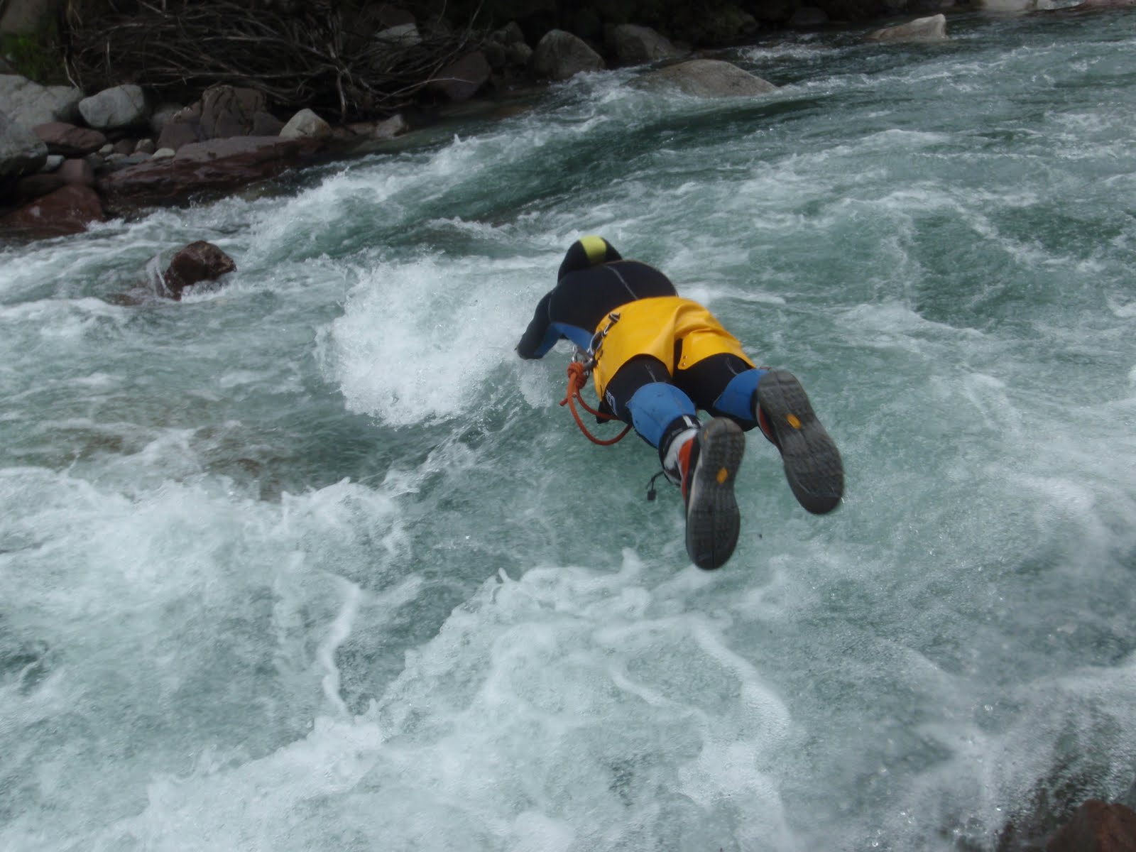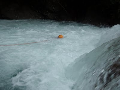 El dissabte per la tarde vam assistir a una classe d'»aigues vives avançades» amb Mario i Chema, però que per falta d’aigua no vam poder trobar un lloc adient, i ens vam haber de conformar en jugar un poc pels rebufos i contres de la «Gorga de los Pecadores».