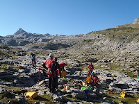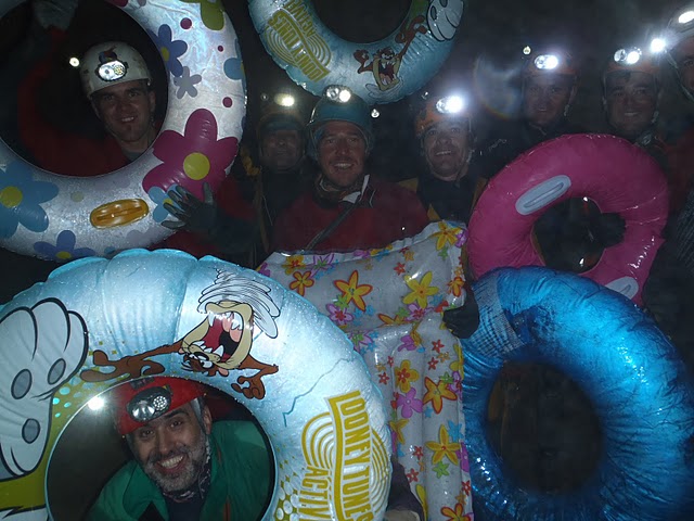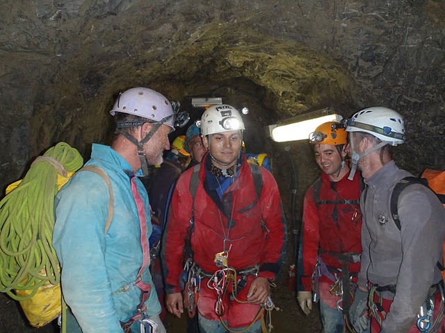 Un cop a l’altre costat del túnel del vent, ens fiquem roba seca i fem la menjada forta. Comencem la segona meitat de la cavitat a un ritme fort ja que no te gaire pèrdues, superant els mars de blocs i forts desnivells de les grans sales: Navarra, Lepineux, Casteret, Loubens, el Metro, Queffelec, Adelie, Chavalier. Per fi després de 10h6’ arribem a Sala Verna, on agafem el túnel que ens traurà superfície desprès de -832m de desnivell i 8.300m de recorregut.