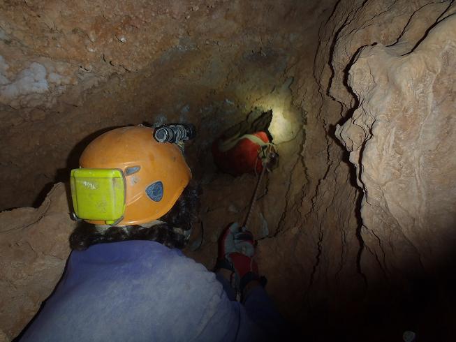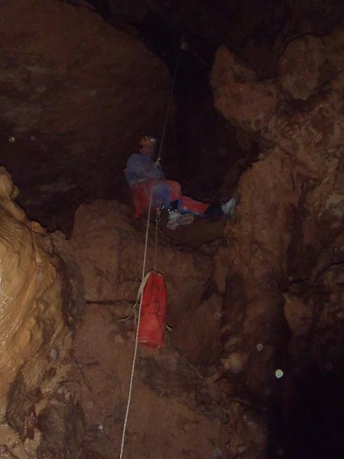 Portejant els macutos a la gatera Còsmica- Gatera cota -100m