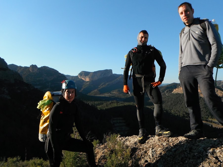 El dissabte afrontant les condicions meteorològiques adverses, vent i molt de fred, vam anar a fer el barranc del Coll de Puntalet (Arnes).