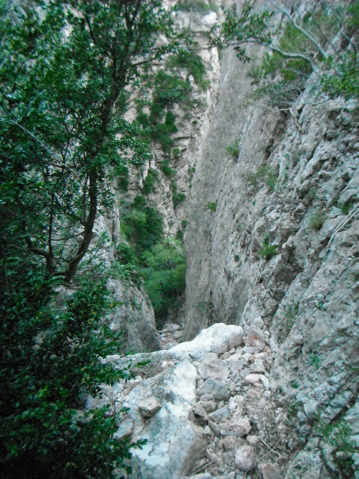 la vam equipar lo 21-4-2012 Josep, Toni, Mario i servidor. Creiem que era el primer cop que es baixava ja que no vam trobar ni un sol cordino a cap arbre, clar que als 80' es deixava poc o res de material si no era imprescindible, i a la canal tens força naturals.