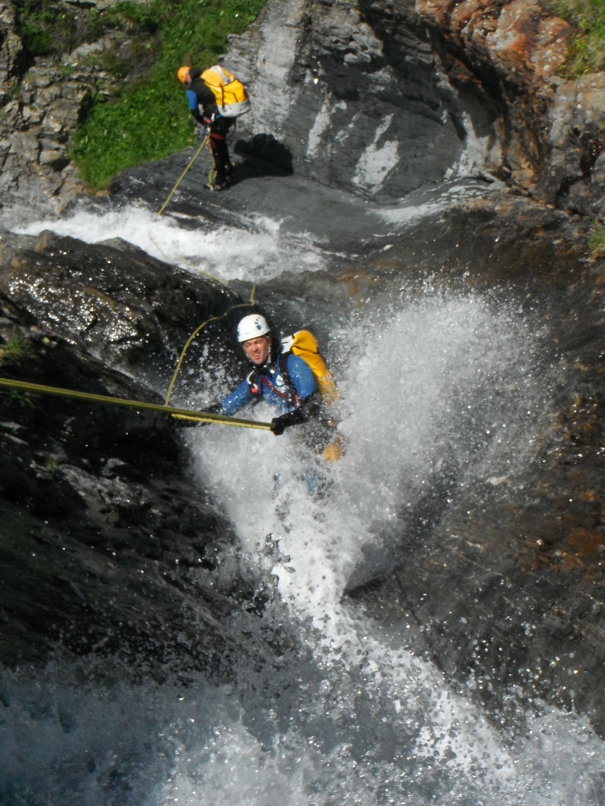 A principi de mes, aprofitant que estàvem per Bielsa, vam creuar la frontera per fer el barranc Nesta de Saux Superior. És un barranc poc conegut, situat a la sortida del túnel de Bielsa. Nosaltres vam decidir fer-lo integral, entrant a 2280m d’alçada. Però creiem que és millor entrar uns cent metres més avall, sense fer la cascada de 45m, ja que és una rampa sense gaire interès. En general és de caràcter obert, però va guanyant a la part inferior, amb els seus ràpels per dintre l’aigua.