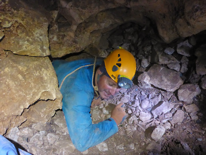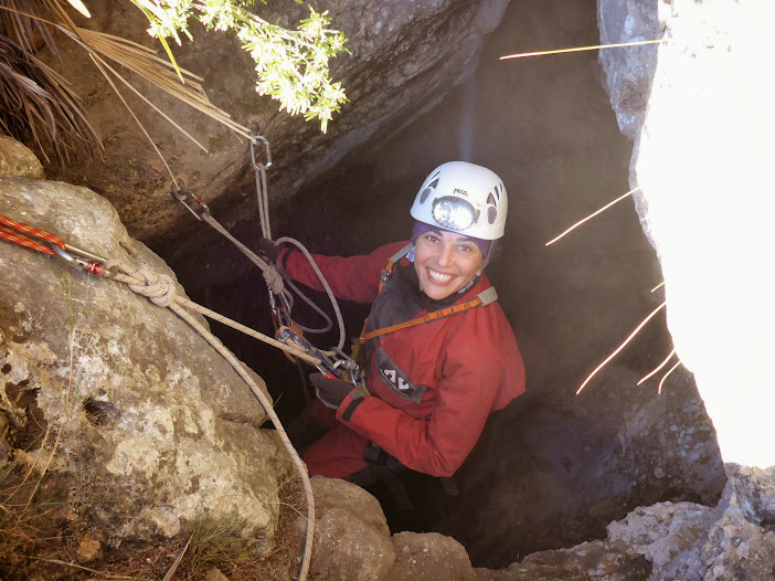 La cavitat ens sorprèn molt , al principi esta una mica bruta però superat un primer pas estret ens adonem que estem en una cavitat bastant vertical i esportiva .